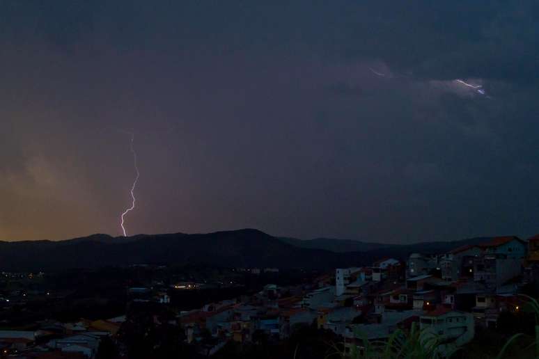 22 de janeiro - De São Bernardo do Campo, na Região Metropolitana, era possível avistar os raios que iluminavam o céu da capital paulista