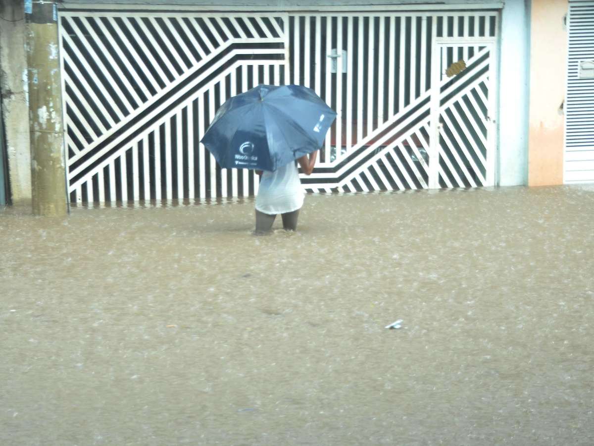 24 de janeiro - Pedestre se arrisca e caminha por rua alagada na zona norte da cidade
