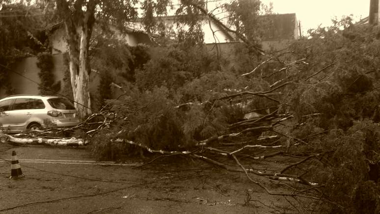 14 de março - Na região de Alphaville, em Barueri, a queda de árvores causou prejuízos aos moradores
