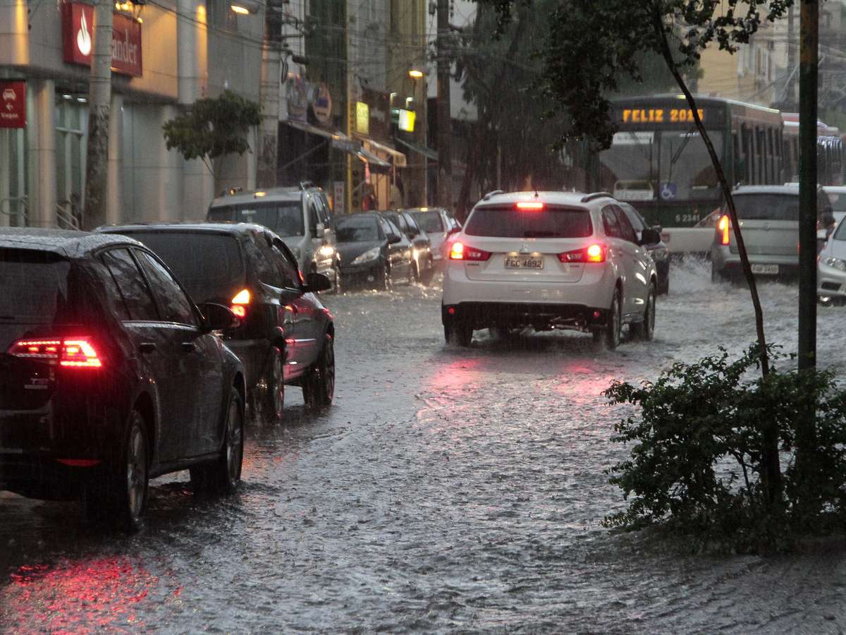 Forte chuva deixa ruas alagadas e prejudica o trânsito em Vitória da Conquista, na BahiaFoto: Joao Rafael Conde / vc repórter