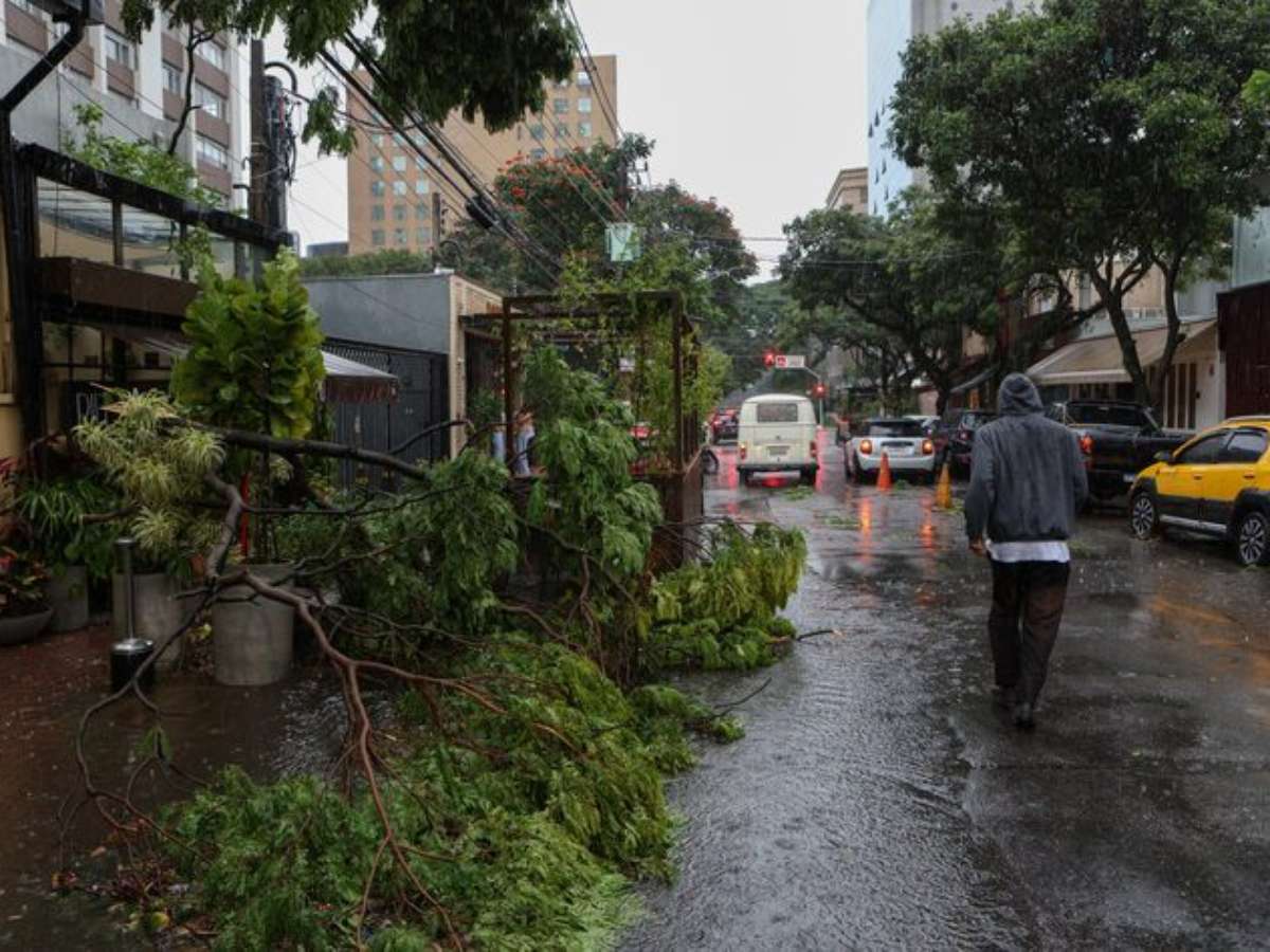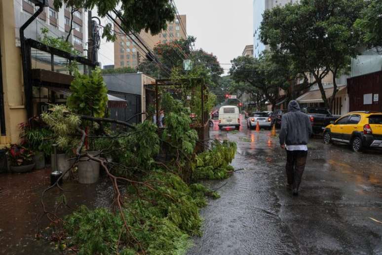 Entre as 158 árvores que caíram na região metropolitana até as 18h29, segundo os bombeiros, está a terceira árvore mais antiga da capital, que ficava no Largo do Arouche, na República (região central). O chichá de aproximadamente 200 anos quebrou com a chuva e caiu.
