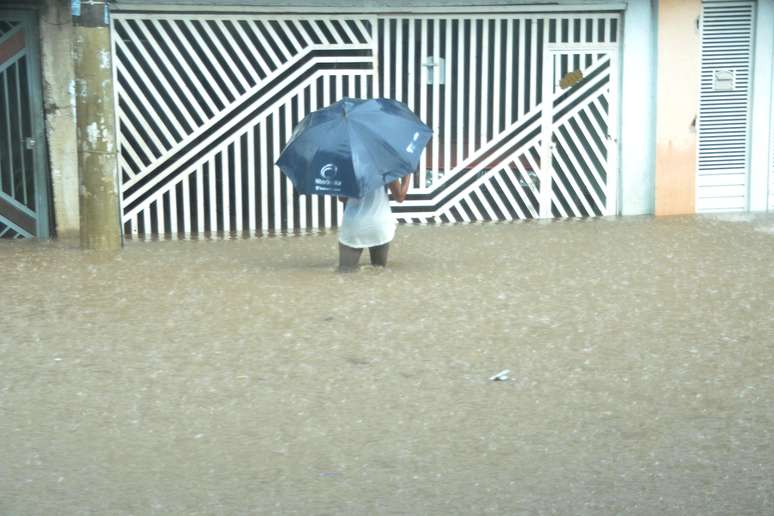 24 de janeiro - Pedestre se arrisca e caminha por rua alagada na zona norte da cidade