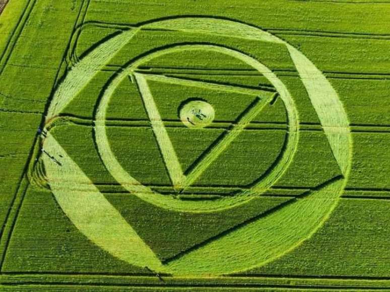 A marca, que pode também ser chamada de agroglifo, tem formatos em círculos, pentagrama e triângulo, com cerca de 703 metros quadrados. Ela foi notada pelo dono da propriedade nas primeiras horas da manhã da última terça, 4.