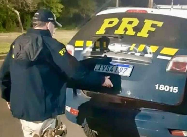 Durante patrulhamento, os policiais deram ordem de parada ao condutor de uma motocicleta Yamaha Fazer, com placas de Portão (RS). Após a identificação do motorista, foi constatado nos sistemas policiais que ele estava foragido da Justiça do Rio Grande do Sul, com mandado de prisão em aberto pelo crime de estupro de vulnerável.