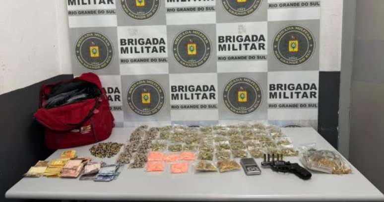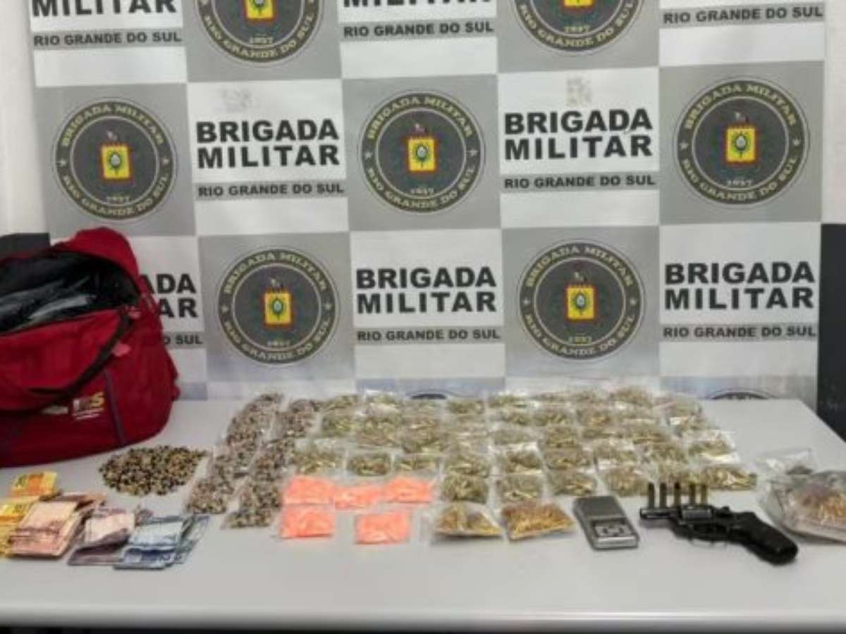 No interior da residência, os policiais apreenderam cerca de 840 gramas de cocaína, aproximadamente 440 gramas de crack, 8 gramas de maconha, além de R$ 1.370 em dinheiro. Também foi localizado um revólver calibre .38, com numeração suprimida.