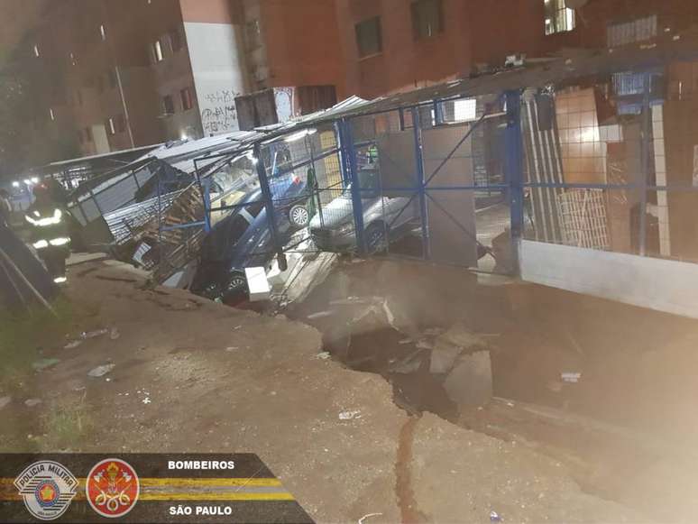 De acordo com o Corpo de Bombeiros, o desmoronamento provocou uma fissura de 50 metros de comprimento, 5 metros de largura e 2 metros de profundidade. Com base nas imagens registradas pela corporação, é possível constatar que ao menos um veículo caiu na fenda.