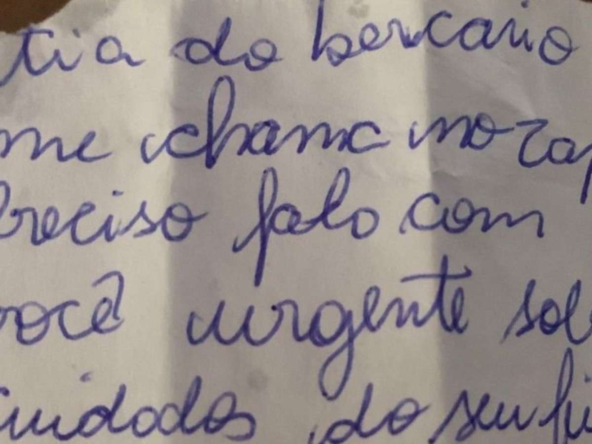 Apesar de o bilhete ter sido enviado por meio da mamadeira, informações apontam que a mãe teria sido abordada pela ex-funcionária nas redes sociais, onde teria recebido diversos vídeos do filho. Em imagens que circulam na internet, a criança aparece dormindo suada. Em outra foto, é possível ver o menino sozinho, em uma sala vazia, sentado em uma cadeira de refeição, sem poder sair.