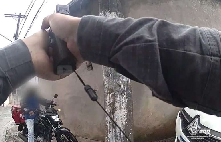 O suspeito foi abordado já fora da casa, quando saía de moto. Imagens das câmeras corporais mostram que o homem não resistiu à abordagem. Ele foi levado para o 89º Distrito Policial (Portal Do Morumbi), onde a ocorrência foi registrada. A defesa do suspeito não foi localizada.