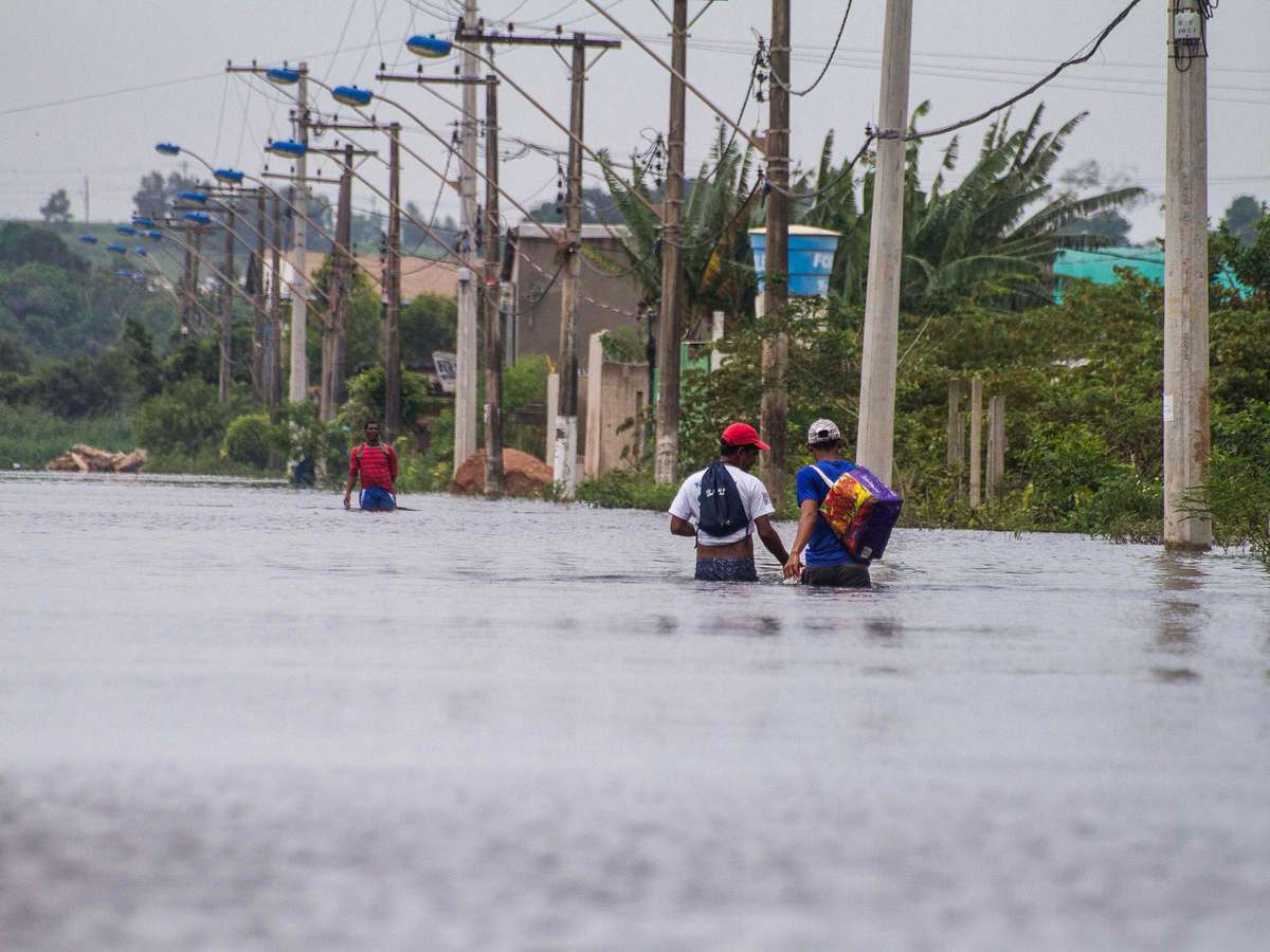 26 de dezembro - Moradores caminham por área alagada no bairro Darly Santos, em Vila Velha