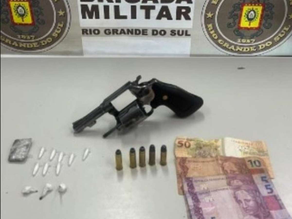 O suspeito foi localizado vestindo casaco preto e boné, como descrito na informação recebida. Na revista, foram encontrados um revólver calibre .38 com numeração suprimida, cinco munições, 11 porções de cocaína, uma porção de maconha e R$ 70,00 em dinheiro.