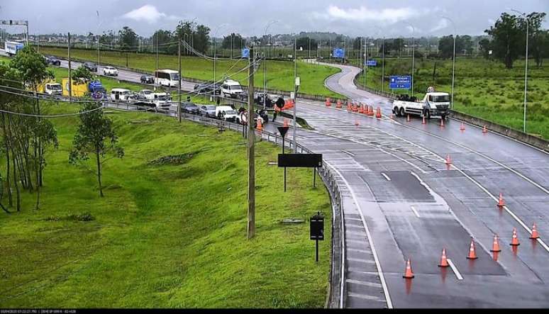 Com a operação comboio, a Serra Nova da Tamoios está operando no sistema de pare e siga, ora no sentido do litoral, ora no sentido de São José dos Campos, segundo a concessionária. A formação dos comboios é acompanhada pela Polícia Militar Rodoviária e por equipes da concessionária. Até o final da manhã, não havia previsão de liberar as pistas da serra antiga.