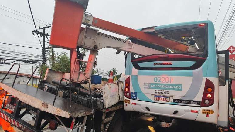 O caso aconteceu na manhã desta quinta na Avenida Frei Cirilo, em Messejana. Testemunhas relataram que o guindaste atingiu o ônibus, que estava em uma parada, e atravessou a lateral do coletivo, acertando cinco passageiros que estavam na parte de trás.