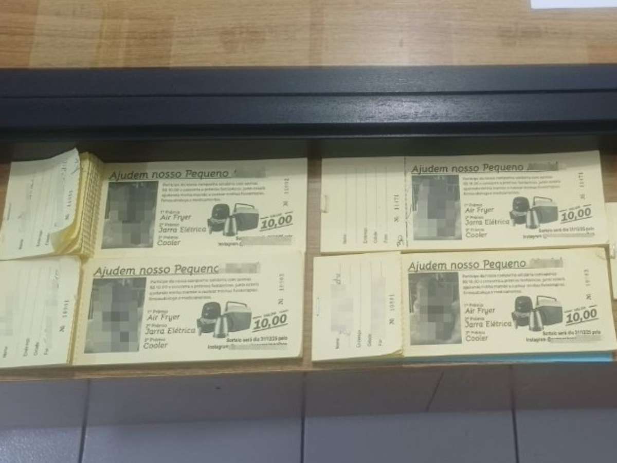 Após receber denúncia informando que duas mulheres estariam realizando venda de rifas na área de obras de reforço de encosta do morro, uma equipe deslocou até o local e encontrou duas mulheres oferecendo rifas supostamente destinadas a arrecadar recursos para o tratamento de uma criança. Elas também tinham diversas fotografias da criança.