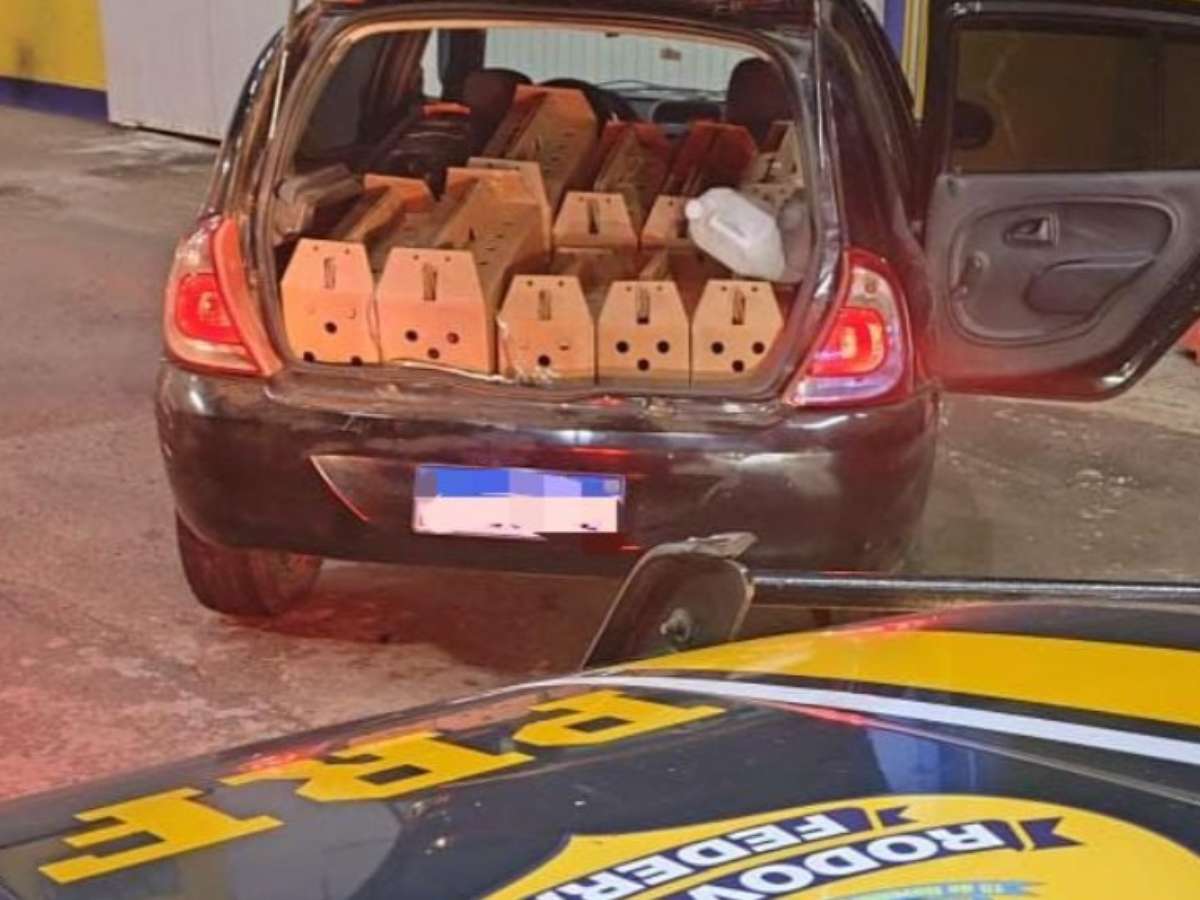Os animais estavam confinados em caixas, dentro do porta-malas