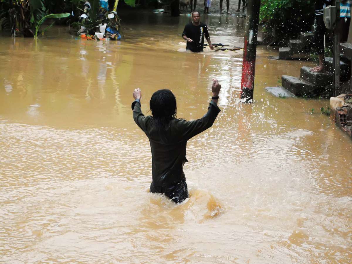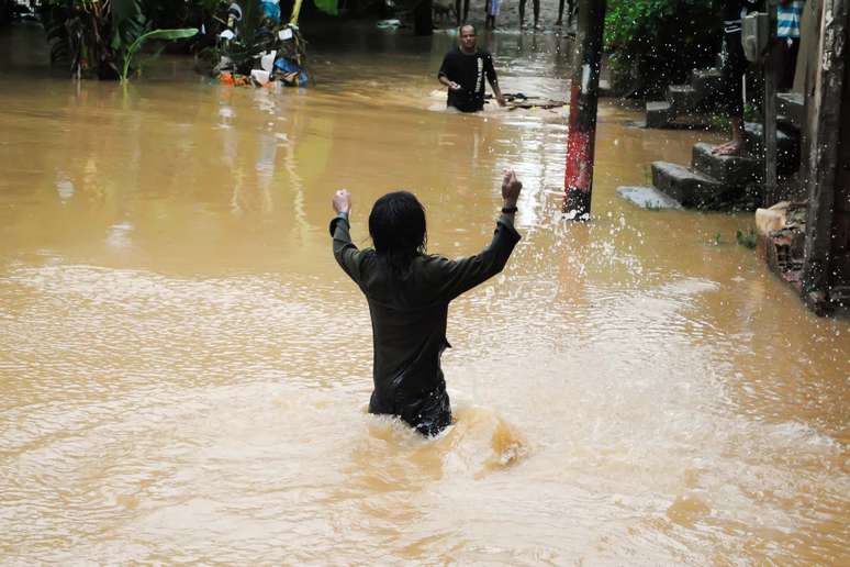 Chuva causa alagamento e estragos na região de Santa Cruz da Serra, na cidade de Duque de Caxias (RJ), nesta segunda-feira