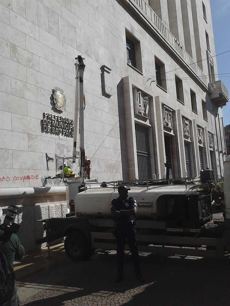 Dia foi de limpeza e conserto nos estragos causados por manifestantes na região da prefeitura de São Paulo