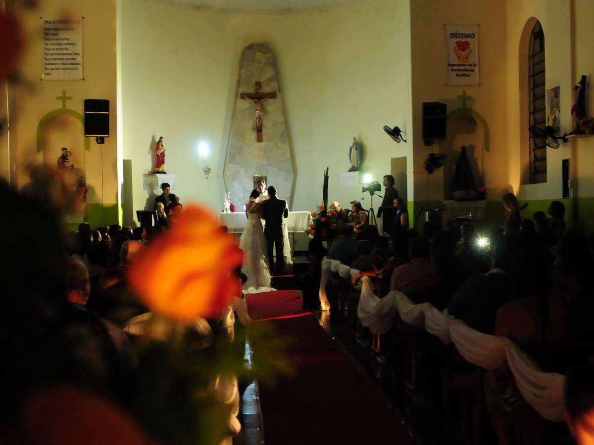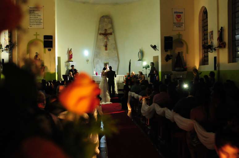 Depois de muitas promessas de religação não atendidas, os noivos cansaram de esperar e decidiram se casar no escuro. "Fomos incentivados por nossos amigos, que colocaram seus carros de frente para a entrada da igreja e acenderam os faróis, levando luz para dentro", conta o casal. Além disso, as luzes das baterias das equipes de filmagens e lanternas de celulares serviram para que padrinhos e noivos pudessem ver e assinar o livro de proclamas.