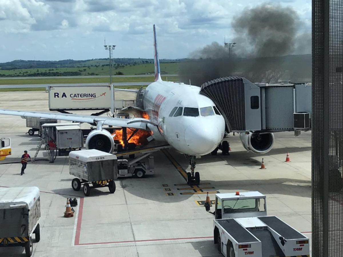 Esteira da Latam pega fogo ao lado de aeronave em Confins
