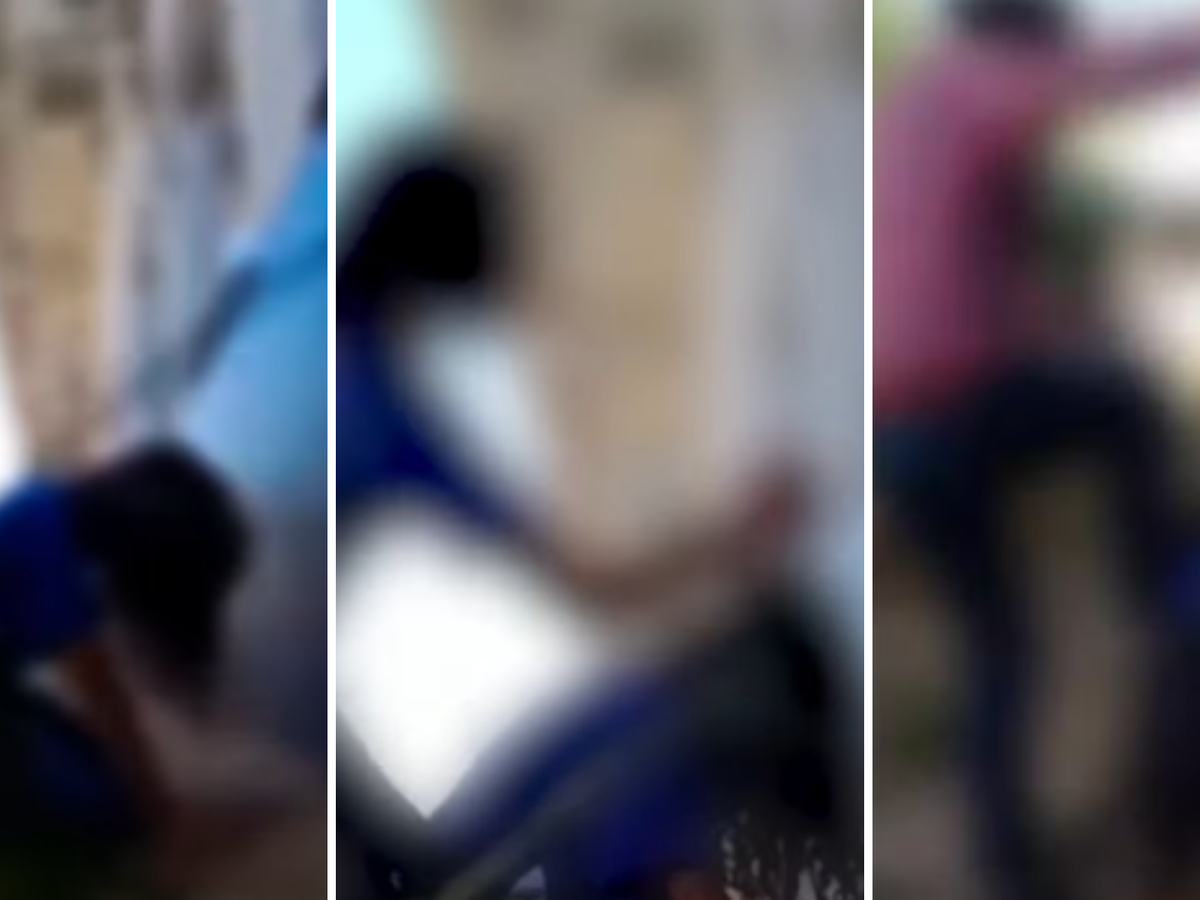 Nas imagens, que estão circulando nas redes sociais, adolescente fica ajoelhada enquanto é alvo dos golpes