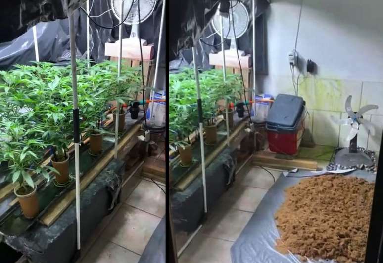 Além disso, a polícia apreendeu 12 quilos de maconha, incluindo plantas em diferentes estágios de crescimento, flores conhecidas como "camarões" e parte já prensada. Equipamentos como aquecedores, exaustores, insumos, lâmpadas de LED e luminárias também foram recolhidos.