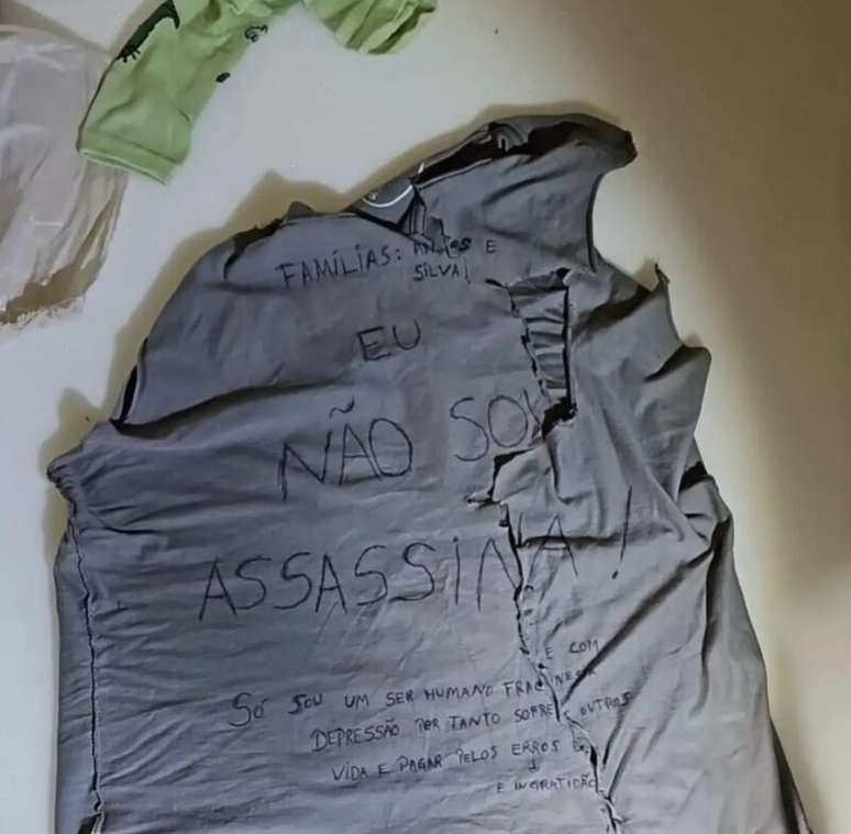 "Eu não sou assassina! Só sou um ser humano fraco e com depressão por tanto sofrer na vida e pagar pelos erros e ingratidão", diz a mensagem.