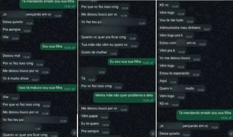 A confirmação veio dias depois, quando a jovem recebeu mensagens e áudios do pai. Abalada, ela relatou que uma tia ouviu o conteúdo, no qual o homem admitia o crime e fazia novas investidas. A vítima detalhou: "Ele começou a me mandar um monte de mensagens, um monte de áudios, eu comecei a ficar nervosa. Minha tia pegou o celular da minha mão e ela escutou os áudios, estava ele assumindo que naquele dia tinha ficado sim comigo, que queria ficar de novo comigo, que queria casar comigo, umas coisas horrorosas".