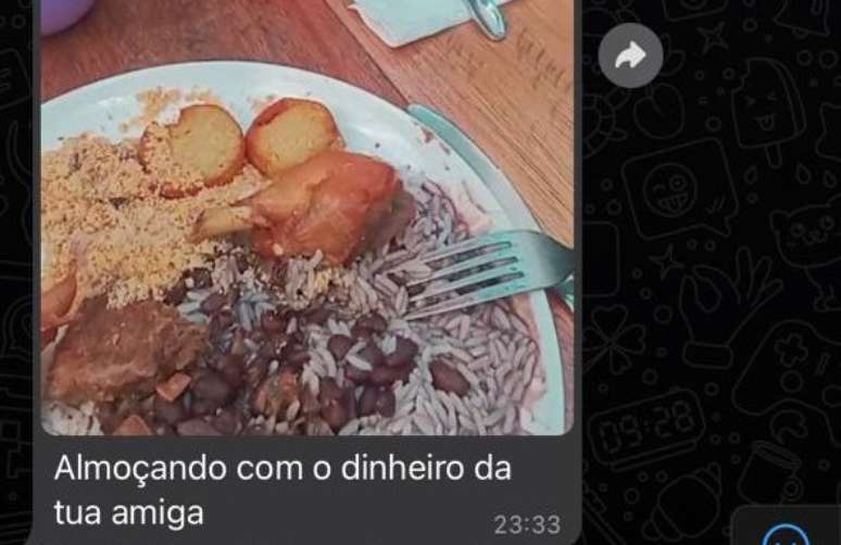 “Almoçando com dinheiro da sua amiga”, enviou ele em mensagem para uma amiga de Julia Kastrup, que foi uma das vítimas do golpe.
