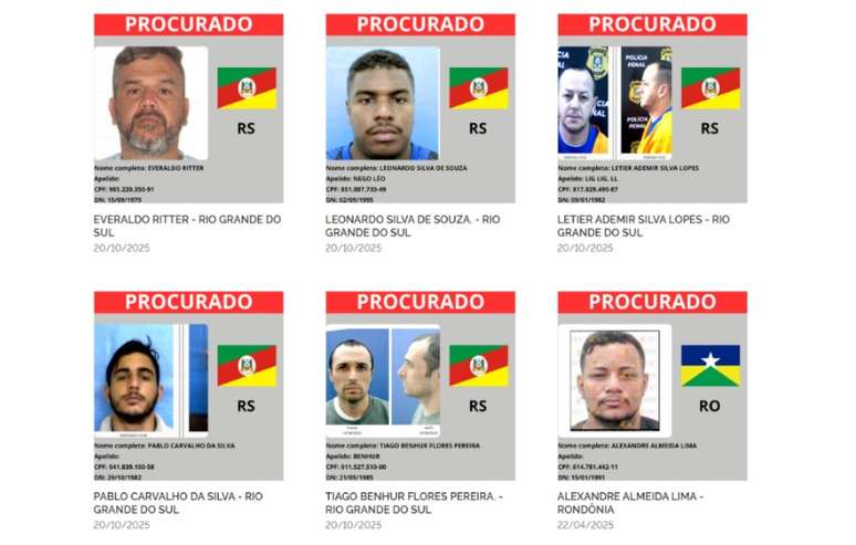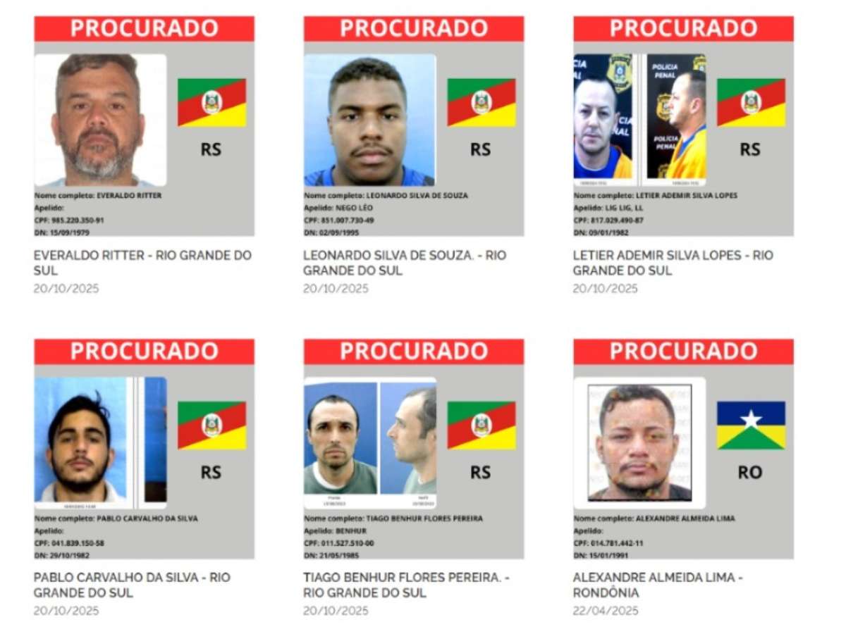 Governo federal lança "lista vermelha" dos mais procurados do Brasil; confira os gaúchos incluídos