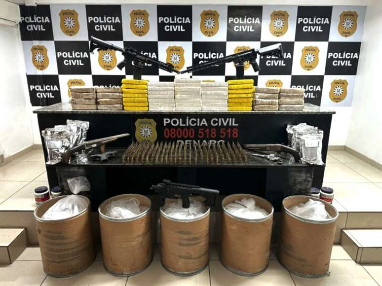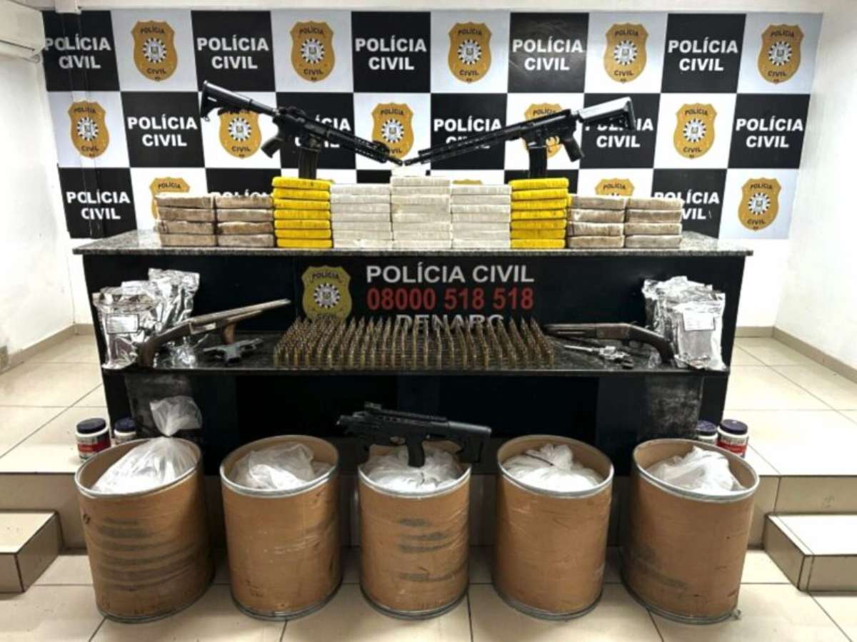 No local, os agentes encontraram grande quantidade de entorpecentes e materiais usados na produção de drogas. Foram apreendidos 37 kg de cocaína, 17 kg de crack, além de mais de 125 kg de substâncias químicas e acessórios. Também foram localizadas armas de grosso calibre, incluindo dois fuzis 556, pistolas, espingardas e milhares de munições.