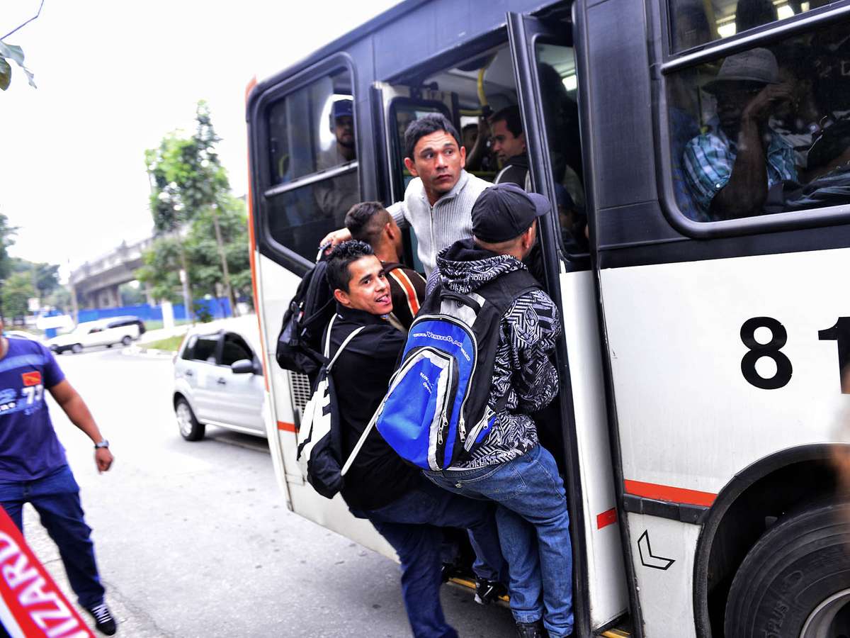 Pessoas tentam driblar a greve dos ferroviários pegando ônibus cheios