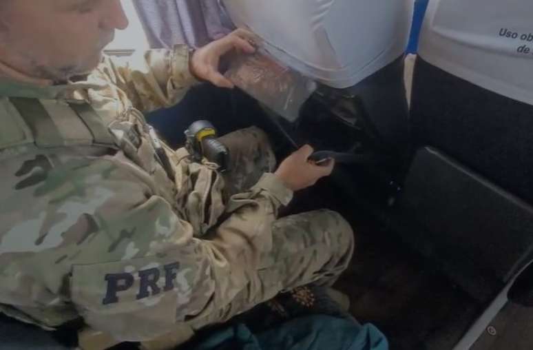 O ônibus, que fazia a linha Foz do Iguaçu-Porto Alegre, foi parado durante uma operação de combate ao crime. Na fiscalização, os agentes encontraram um compartimento oculto em duas poltronas, onde estavam escondidos 20 celulares.