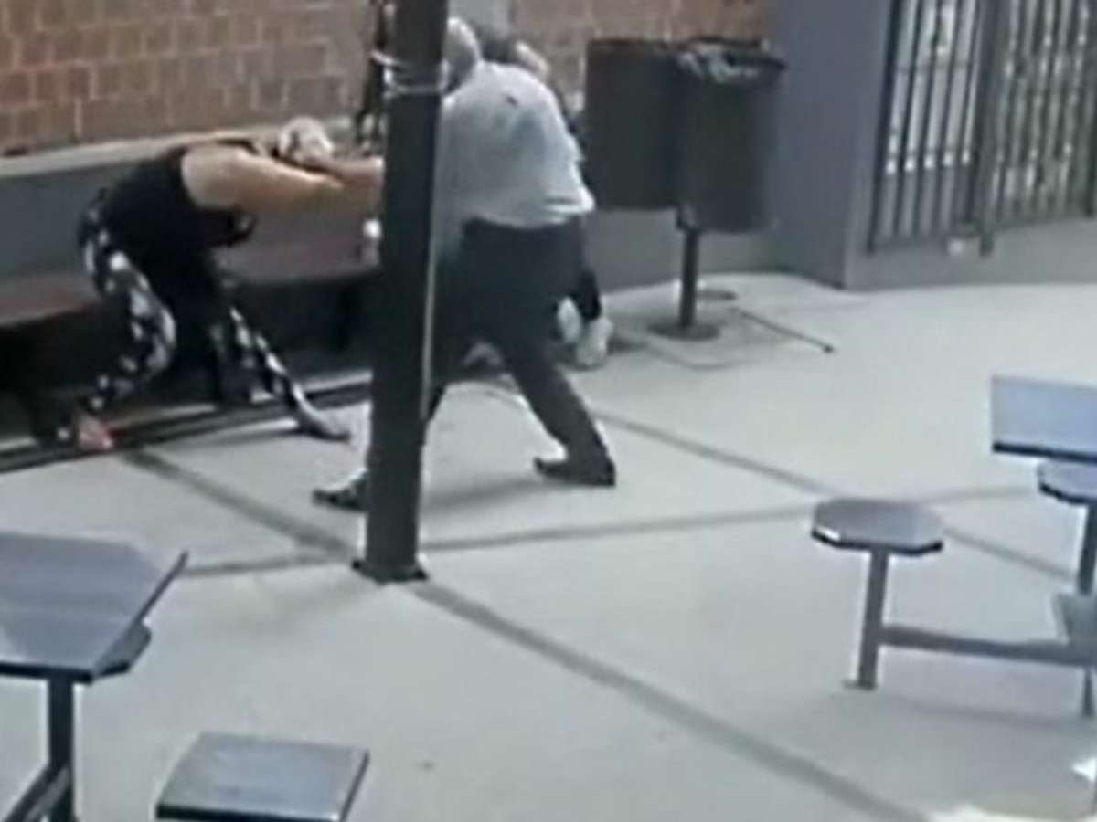 Durante a discussão, o homem agrediu a mulher com socos e puxões de cabelo. As imagens registradas pelas câmeras mostram o momento da agressão.