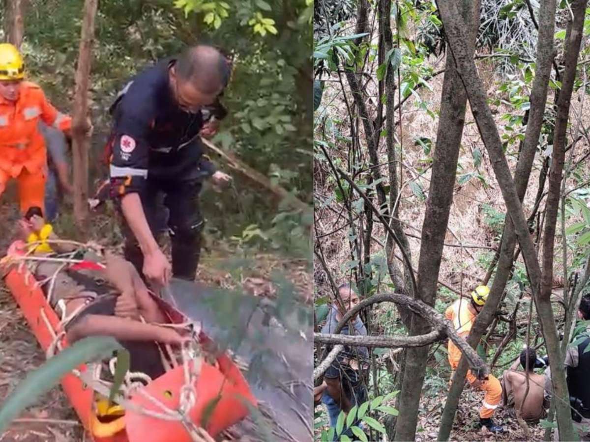 “A equipe do Samu (USB 16) realizou o monitoramento dos sinais vitais da vítima, que se mantiveram dentro da normalidade. Em seguida, os militares imobilizaram o homem na prancha longa e na maca sked e retiraram-no da grota”, informou o Corpo de Bombeiros.