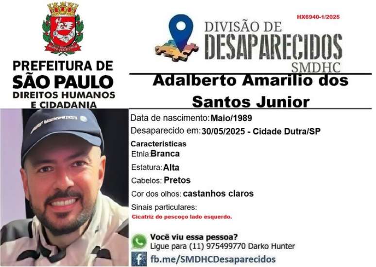 Segundo a família, Adalberto Amarilio dos Santos Junior foi visto pela última vez na noite de sexta, 30, quando esteve na edição moto do Festival Interlagos 2025. DHPP investiga o caso