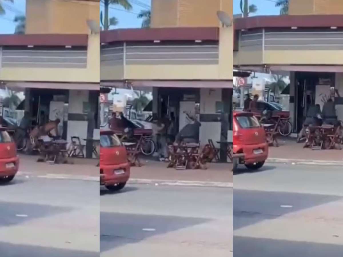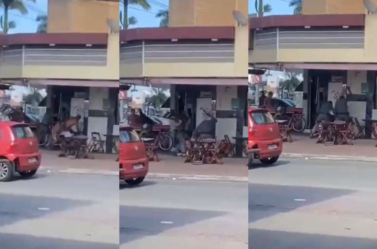 Homem é agredido por PMs com cadeiradas e golpes de cassetete em padaria do litoral de SP
