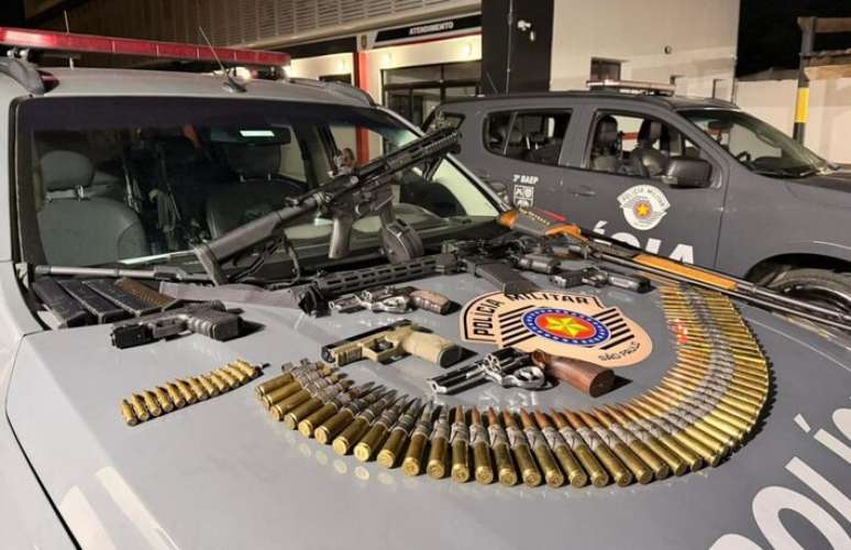 Segundo a Polícia Militar, parte das armas não possuía documentação e apresentava numeração raspada. Também foram recolhidos acessórios como bolsas para transporte de armas longas, um coldre e chaves de manutenção.