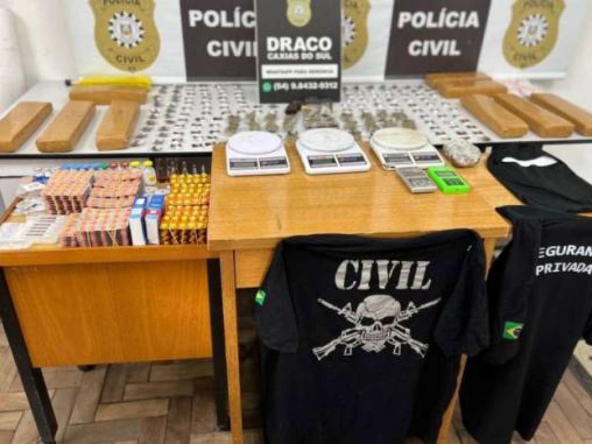 Um homem de 22 anos foi preso na manhã desta quarta-feira (4) em Caxias do Sul, durante uma operação da Delegacia de Repressão às Ações Criminosas Organizadas (Draco). A ação ocorreu no bairro Planalto e resultou na apreensão de nove quilos de drogas, uma arma com numeração raspada e outros materiais ilegais.
