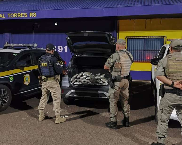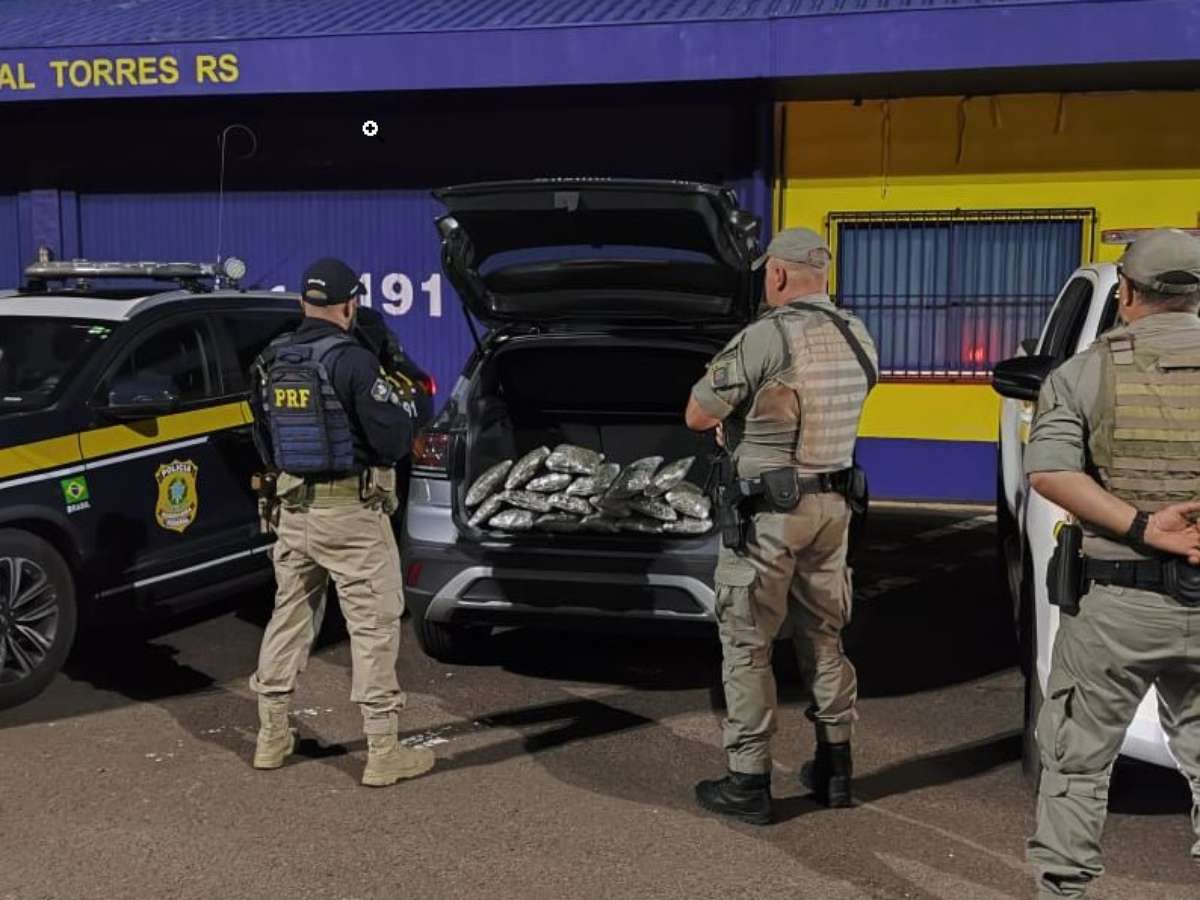 A Polícia Rodoviária Federal prendeu, na madrugada desta segunda-feira (8), um homem flagrado transportando cerca de 7 quilos de drogas em um veículo que passava pela BR-101, em Torres, no Litoral Norte. A ação teve apoio da Brigada Militar.