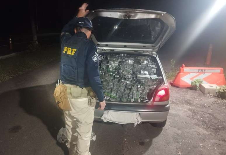 Durante a vistoria no automóvel, os policiais constataram que o interior do carro estava completamente carregado com cigarros de origem estrangeira. Ao todo, foram contabilizados aproximadamente 10 mil maços do produto, que ingressaram no território nacional de forma ilegal, sem o devido desembaraço aduaneiro ou pagamento de tributos. O condutor, natural de Santana do Livramento, foi detido em flagrante pelo crime de contrabando.
