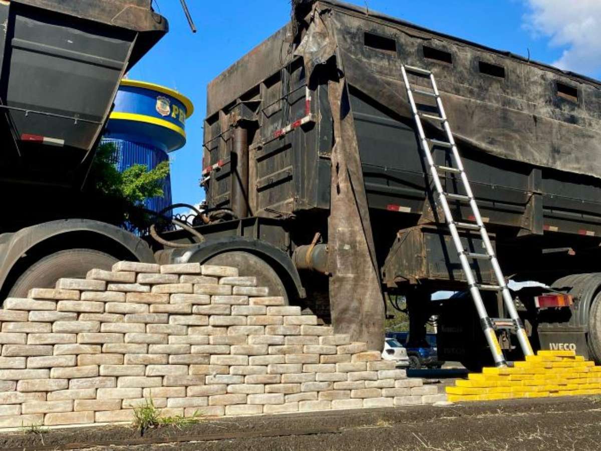 Com o apoio dos cães farejadores Jack e Cliff, a equipe policial realizou uma varredura nos dois semirreboques. Os cães indicaram a presença de ilícitos, e os agentes encontraram compartimentos ocultos nas laterais da estrutura dos veículos. No interior, foram localizados 199 tabletes de drogas, sendo 159 kg de crack e 52 kg de cocaína.