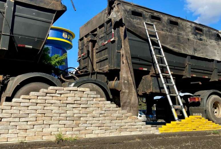 A droga, que era transportada escondida na estrutura de um caminhão, foi descoberta por cães farejadores