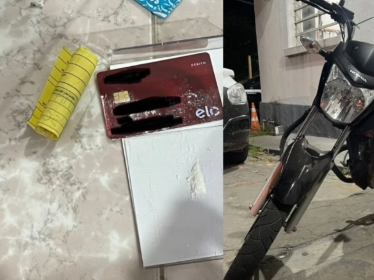 Funcionários do local confirmaram a presença da motocicleta e indicaram o quarto onde o homem estava hospedado. Durante a abordagem, os policiais apreenderam três porções de cocaína com o suspeito.