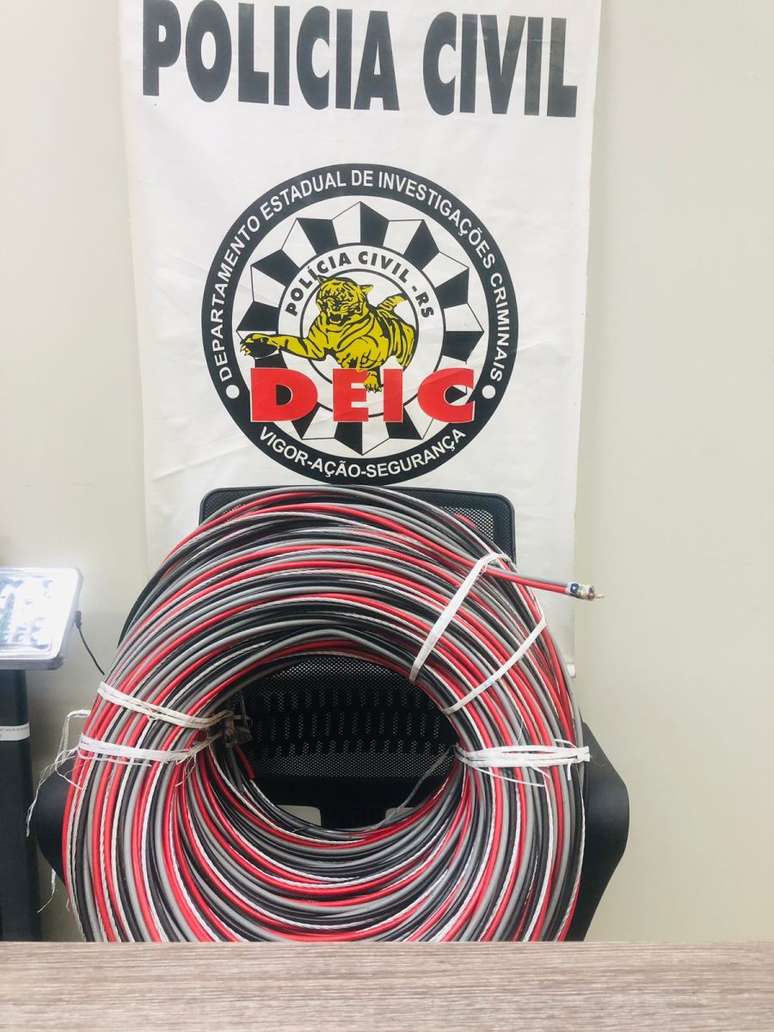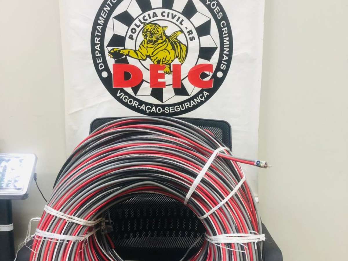 O homem foi preso com cerca de 350 metros de cabos identificados com o nome da CEEE Equatorial. A prisão aconteceu na sexta-feira (15) por agentes da Delegacia de Repressão dos Crimes Contra ao Patrimônio das Concessionárias e dos Serviços Delegados. Ele deve responder pelo crime de receptação qualificada.