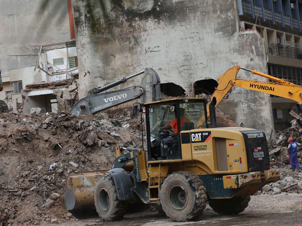 Hoje (12) as equipes de buscas deram continuidade aos trabalhos na procura de vítimas. No entanto, a presença de água no segundo subsolo dos escombros do prédio fez com que parte das máquinas pesadas não pudessem ser usadas. Duas bombas estão retirando a água do local.