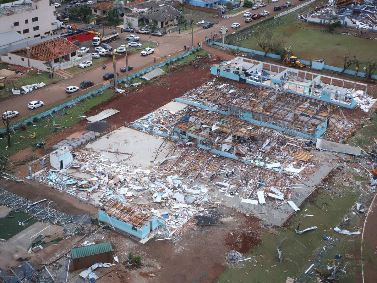 Imagens aéreas revelaram a dimensão da devastação causada pela passagem de um tornado no Paraná na noite de sexta-feira, 7. Segundo o governador do Estado, Ratinho Jr (PSD), Rio Bonito do Iguaçu foi a cidade mais afetada, com cerca de 90% de suas construções destruídas. A cidade foi atingida por tornado de nível F-2. Ao menos seis pessoas morreram em razão do tornado, sendo cinco na cidade de Rio Bonito do Iguaçu, localizada a 380 quilômetros de Curitiba. O governador também decretou luto de três dias.