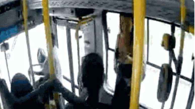 Imagens mostram momento em que janela de ônibus cai e mulher despenca do veículo em movimento