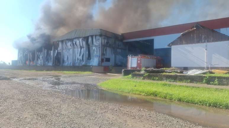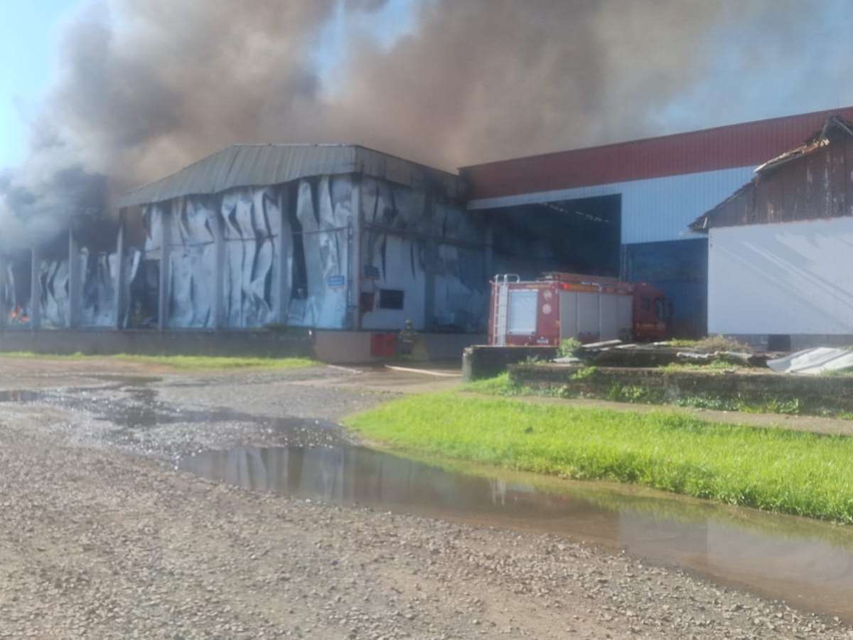 Incêndio de grande proporções atinge fábrica no RS; não há informações sobre feridos