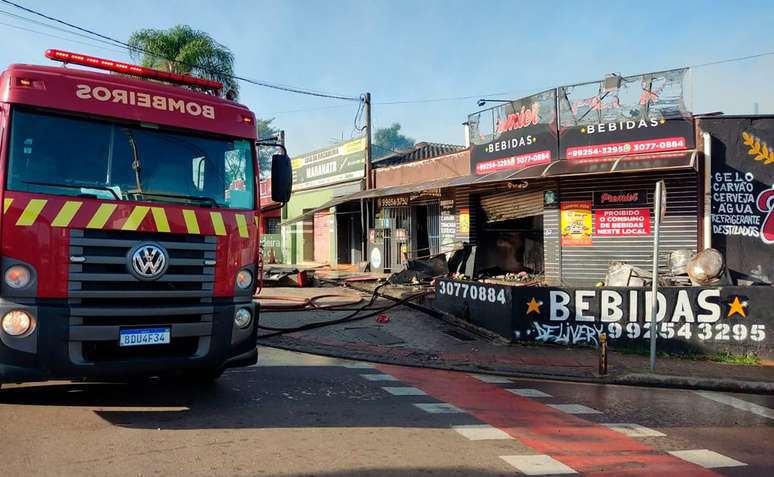 Uma distribuidora de bebidas foi destruída por um incêndio na manhã deste domingo (12), em Santa Felicidade, em Curitiba. Equipes do Corpo de Bombeiros tiveram que agir rápido para evitar que o fogo se alastrasse para outros imóveis.