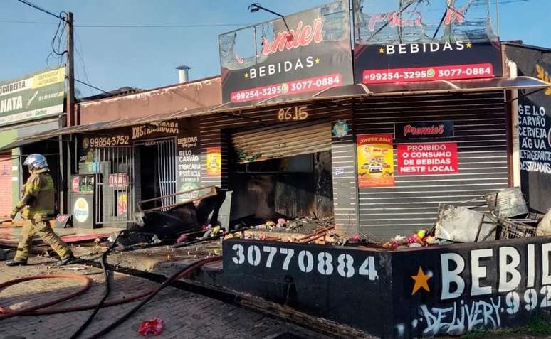 Segundo os bombeiros, o fogo começou no telhado e atingiu praticamente todo o imóvel da distribuidora