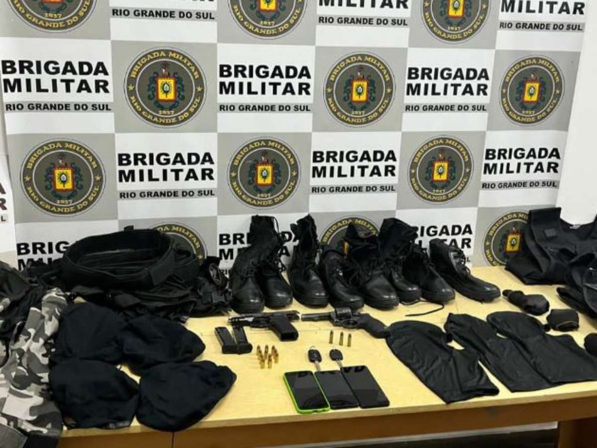 Durante a operação conjunta, os policiais apreenderam também uma menor de idade, dois veículos clonados, armas de fogo, munições e uniformes camuflados semelhantes aos utilizados pela Brigada Militar. A abordagem foi realizada pelas equipes especializadas da Brigada Militar.